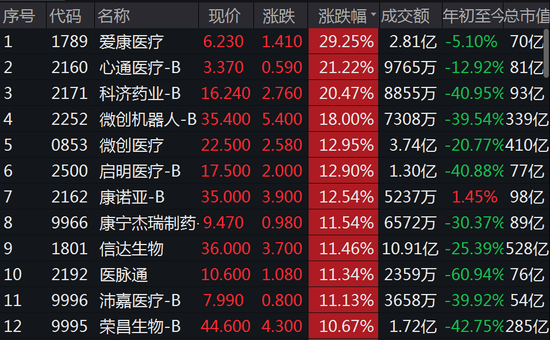 首先,爱康医疗暴涨背后,是整体市况造好,而大幅下跌的医药股迎来估值修复,光大证券更是高呼医药板块可以乐观起来。