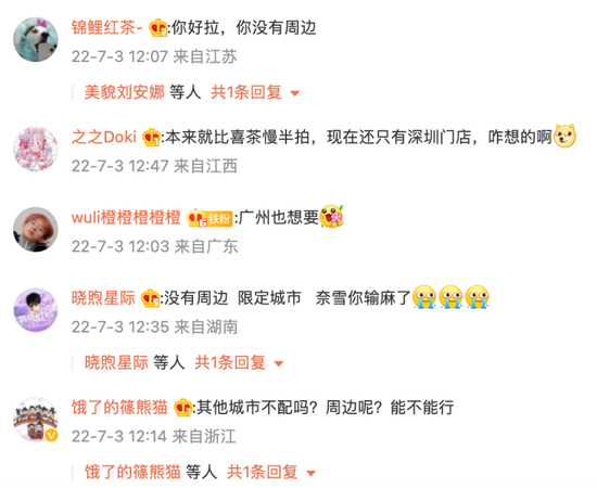 在门店上,喜茶将广州天环广场LAB店、成都宽窄巷子店、北京前门大街店、深圳京基KK MALL店等共四家门店特别设置为【喜·半遮面】主题店。