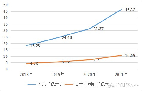 据财报披露,2021年凯莱英营业收入为46.39亿元,同比增长47.28%;归母净利润为10.69亿元,同比增长48.08%。基本每股收益为4.40元。自2016年上市以来,2021年是公司收入增长最快的一年。