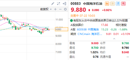 花旗发布研究报告称,维持中海油“买入”评级,目标价16.7港元。该行认为,中海油的桶油主要成本在今年第二季度保持良好,控制31.1美元/桶,较今年第一季度的30.6美元/桶略有上升,主因生产税提高。尽管今年全球石油都在谈论高单位数的成本通胀,但公司成本控制措施一直有效,假设今年上半年派息40%,中期每股派息有望达到每股0.6元人民币,年化股息收益率13%。