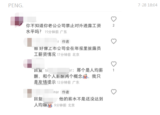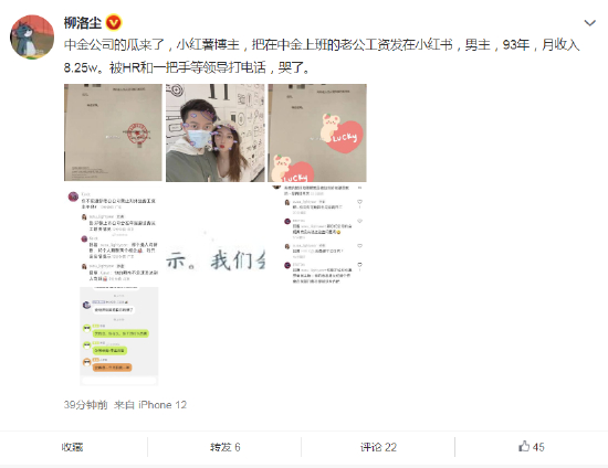 根据截图,这位券商员工的夫人应该是昨日下午5点29分发出,下面有网友提醒她中金公司禁止透露薪资,有可能会影响到她老公工作,她不以为意地回应“没达到年报里的人均”。