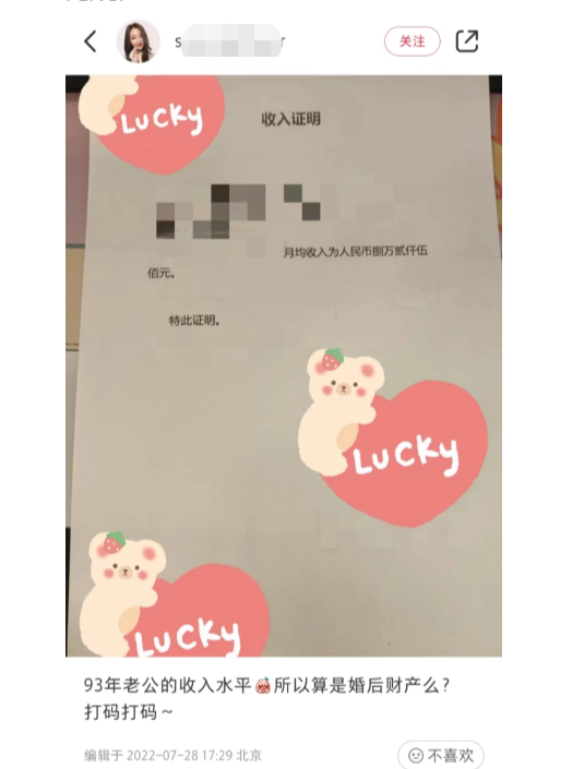 今日,据多名财经博主在微博爆料,小红书上一女子晒老公收入证明,月收入高达八万两千五百元并配文“93年老公的收入,所以算是婚后财产么?”