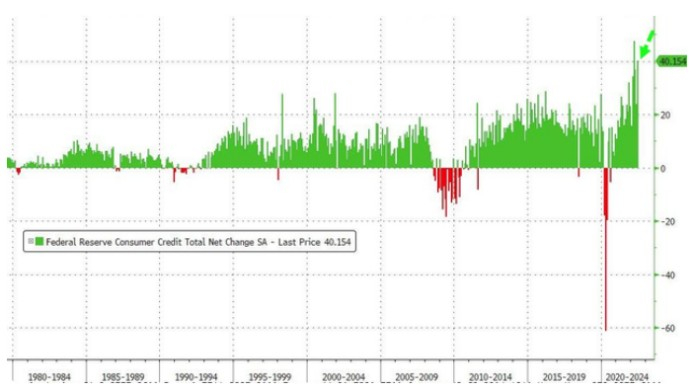 与此同时,根据美国联邦储备银行在8月5日公布的数据显示,美国6月份消费贷款大幅反弹,增加了401.54亿美元,远超市场预期的增长270亿美元,这是有史以来第二高的单月增幅。这两个数据充分说明,美国民众的储蓄正被逐渐抽干,而信用卡很有可能将被刷爆。