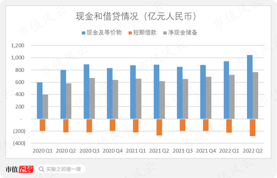 而公司的现金及等价物在Q2已经超过了1000亿元,84%以上都是定期存款。