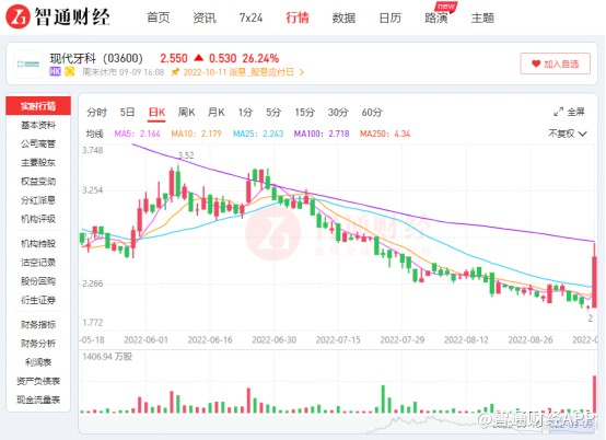9月9日,一家义齿器材制造商现代牙科(03600)以久违的涨幅吸引了众人的目光:当日盘中涨幅超26%,收于2.55港元,成交量放大至832万。这是自7月中旬以来,公司股价首次逼近60日均线。