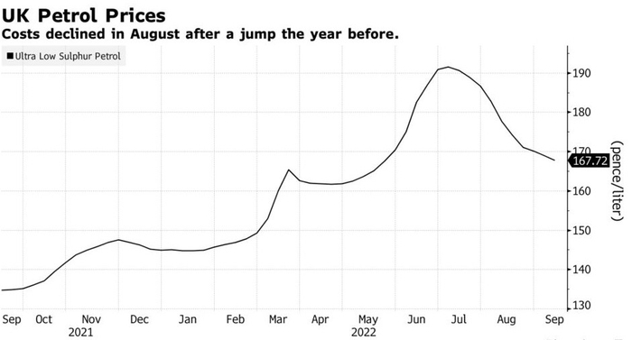 彭博经济预测英国通胀率将在10月份达到10.5%的峰值,远低于英国央行8月份在特拉斯预测的超过13%。包括英国央行在内的多数机构预计,假设天然气和电力成本不继续上涨,明年价格涨幅将迅速回落。
