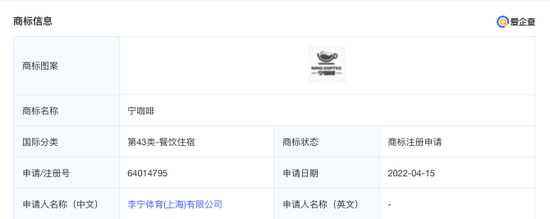 李宁还在最近跨界了火热的咖啡赛道。爱企查显示,2022年4月15日,李宁体育(上海)有限公司申请了“宁咖啡”商标,随后李宁公开回应称,希望通过优化店内服务,提升顾客在购物时的舒适度和体验感。在店内提供咖啡服务,将会是李宁针对零售终端消费体验环节的一次创新尝试。
