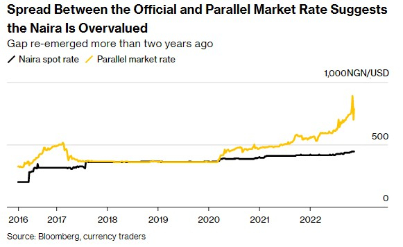 尼日利亚实行由严格控制的官方汇率主导的多重汇率制度,切断了许多企业和个人的交易渠道,进而推动需求流向未经授权的黑市。这导致管理市场与平行市场之间的利差显著扩大。相差将近77%。