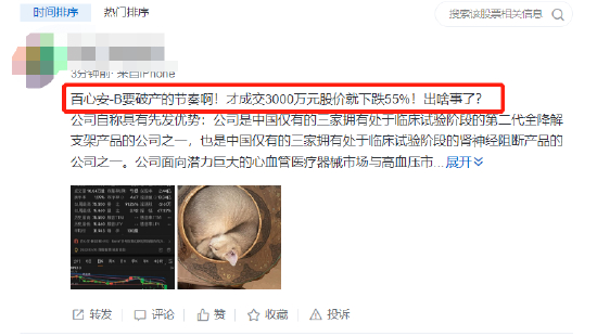 对于公司股价暴跌,有投资者表示,“百心安这是要破产的节奏啊,成交3000万元股价下跌55%”。关键是,百心安在今年9月已经提交了科创板上市申请,这样一家聚焦介入式心血管装置医药公司到底经历了什么?