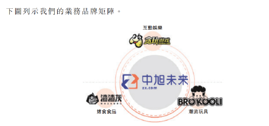 公司主要包括三大业务:互动娱乐业务,运营的主要品牌就是“贪玩游戏”;速食食品业务,孵化的主要品牌是“渣渣灰”;还有潮玩业务“Bro Kooli”
