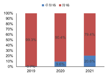 根据招股书,2021年底,蕉下的产品覆盖服装、伞具、帽子、配饰、鞋履等品类。其中防晒口罩、防晒服、袖套等直接切入防晒场景的产品占比近80%。