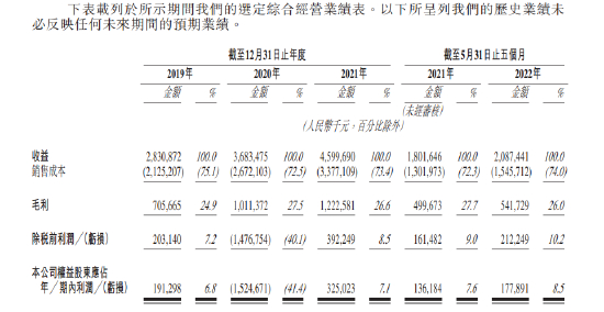 2019至2021年,花房分别实现收入28.30亿元、36.83亿元、45.99亿元,2022年前5个月实现收入20.87亿元;同期,分别实现净利润为1.91亿元、-15.24亿元、3.25亿元以及1.78亿元,公司毛利率有所下滑,目前为26%。