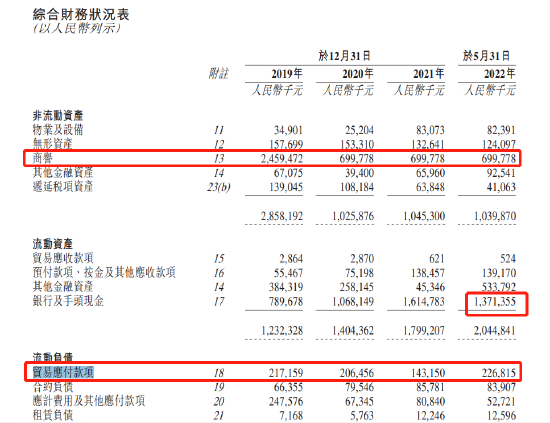目前公司手头有现金13亿,但公司商誉居高不下,2022年公司依然有商誉7亿,2020年24.6亿的商誉公司已确认了17.8亿,造成公司2020年巨额亏损15亿。同时,公司应付款也是居高不下,截至2022年前5个月,公司贸易应付款高达22.7亿。