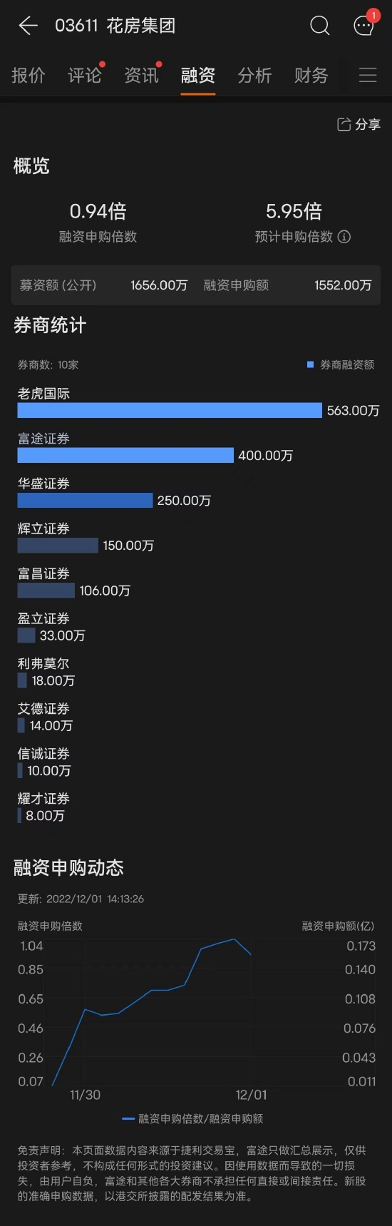 根据公司上市进展,花房11月30日至12月5日进行招股,不过,供公司招股情况并不容乐观,截至12月1日16点,大约两天的时间,花房依旧未能足额认购,甚至公司还存在孖展抽飞的情况。