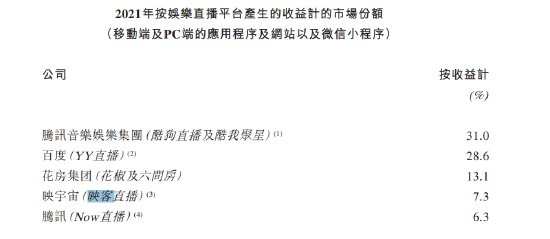 于2019年、 2020年、2021年及截至2022年5月31日止五个月,来自收益贡献最多的主播的收益分别为3470万元、6180万元、6230万元及8750万元, 分别占收益总额的1.2%、1.7%、1.4%及4.2%,根据收入分成,这就意味着该头部主播获得打赏收入至少上亿元。