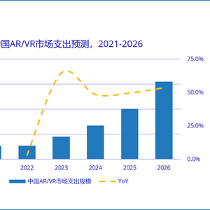 IDC于近日发布2022年V2版IDC《全球增强与虚拟现实支出指南》。IDC预测,2021年全球增强与虚拟现实(AR/VR)总投资规模接近125.4亿美元,并有望在2026年增至508.8亿美元,五年复合增长率(CAGR)将达32.3%。中国将成长为全球 AR/VR最重要的市场之一。2021-2026年中国AR/VR市场将以42.2%的CAGR保持高速增长,在涨幅方面超越美国和西欧等其他八个区域,位列全球首位。2026年中国AR/VR总投资规模将超过120亿美元,占全球24.4%,市场体量仅次于美国。
