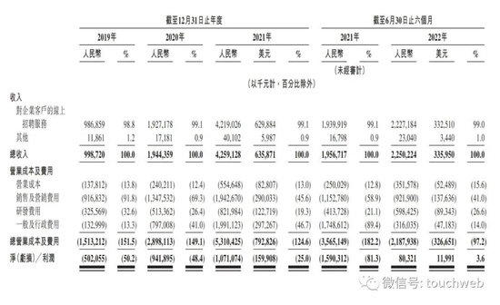 招股书显示,BOSS直聘2019年、2020年、2021年营收分别为9.99亿元、19.44亿、42.59亿;经调整利润分别为-4.68亿元、-2.85亿元、8.53亿元。