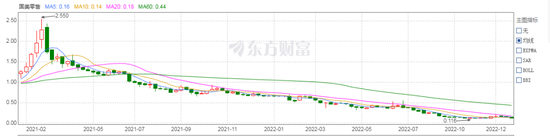 而到今年10月,国美零售的股价创下历史新低(0.116港元/股),总市值不到此前的零头,仅约41亿港元。12月23日,国美零售的收盘价报0.125港元/股。