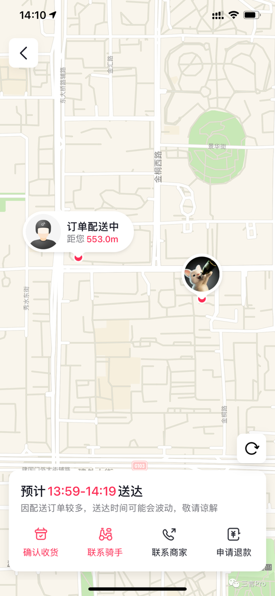 其次,配送时长相对较长。在今天的体验中,虽然抖音、美团、饿了么三家平台均未超时,但是抖音却是耗时最长的一家,而且还是最早下单的平台。