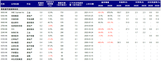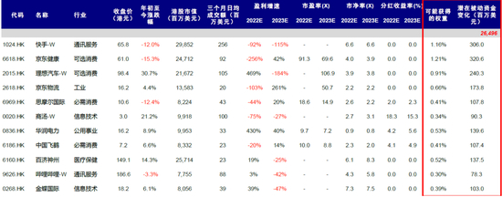 图表:恒生指数季度调整:按照指数量化标准排序靠前,有可能成为纳入潜在标的公司列表(基于彭博一致预期)