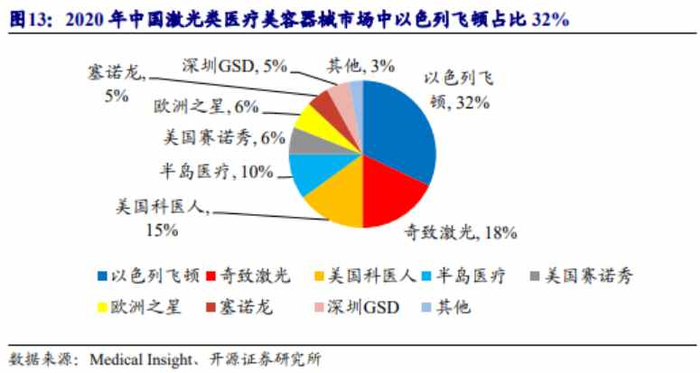 相较之下,此前国内本土医美光电器械行业集中度较低,行业存在大量小型光电器械生产企业,产品技术含量低,价格低廉,产品质量参差不齐。我国本土医美光电企业仅占据约15%的市场份额,以中小型民营门诊、私人诊所以及生活美容院等为主要目标客户。