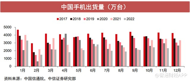 据智通财经了解,根据CINNOResearch的数据,受疫情反复、手机创新驱动力不足的影响,2022年国内智能手机出货量约2.55亿部,同比下降约19%,各季度跌幅约为14%-21%之间,创下2015年以来最低纪录,也是8年内首次跌破3亿部。