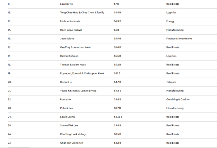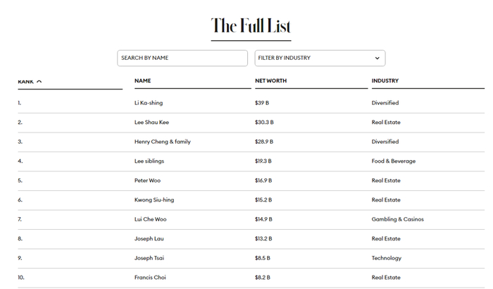 福布斯2023香港富豪榜出炉!李嘉诚蝉联榜首 近一半富豪财富缩水