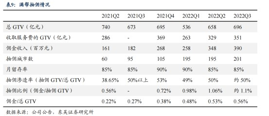 在此前的投资人电话会议上,满帮管理层透露,2022Q4抽佣业务已经覆盖50%的GTV,与此形成的抽佣收入为4.478亿。