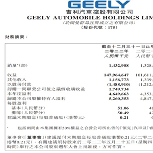 据智通财经观察,吉利汽车2022年业绩保持稳健成长,得益于集团新能源、智能化、国际化、高端化取得显著进展,汽车产品销售呈现“品牌升、销量增、结构优”的特点。