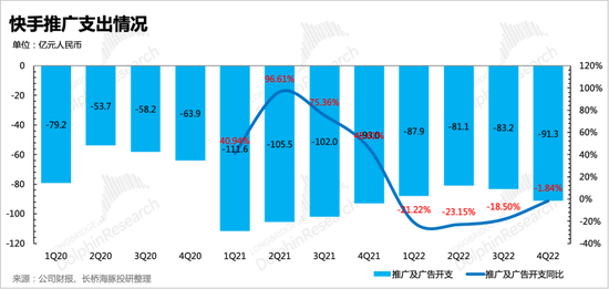 四季度费用上主要优化的是研发费用,进一步看就是员工福利、技术外包两项支出同比大幅度减少。快手高昂的获客支出一直被市场诟病,四季度降幅放缓,主要是裁员效果,推广费用基本与去年持平,与世界杯以及春节预热的支出提前有关。(作者: 海豚君,海豚投研)