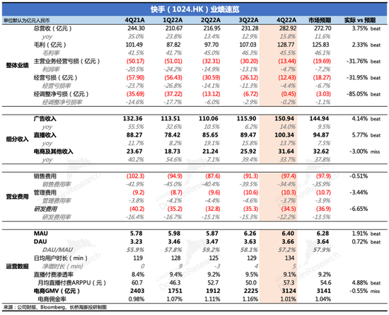 3月29日港股盘后,快手发布了2022年四季度及全年业绩。核心要点如下: