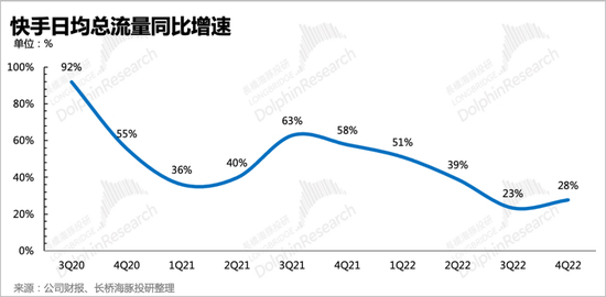 除此之外,短剧、综艺内容的填充率提高,以及直播内容的丰富(世界杯、快聘、理想家、周杰伦线上歌友会等),保证了用户时长突破新高提升至134分钟/天,计算下来,整体流量扩张速度(日活增速*日均用户时长增速)为28%,较三季度加速。