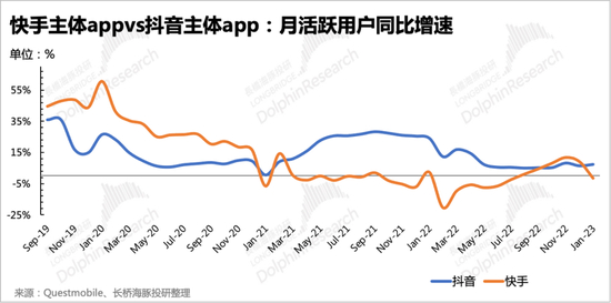 从第三方数据(Questmobile)来看,极速版app的增速仍然强劲,但主站app的流量在下半年均保持正增长。不过相比于劲敌抖音,快手主站的用户已经开始有见顶迹象。