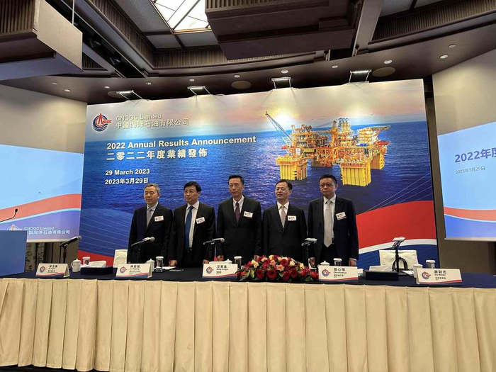 2022年中国海洋石油收入为人民币4222.3亿元(单位下同),同比增长71.56%;股东应占净利1417亿元,同比增长101.51%;每股盈利3.03元,拟派末期股息每股0.75港元。