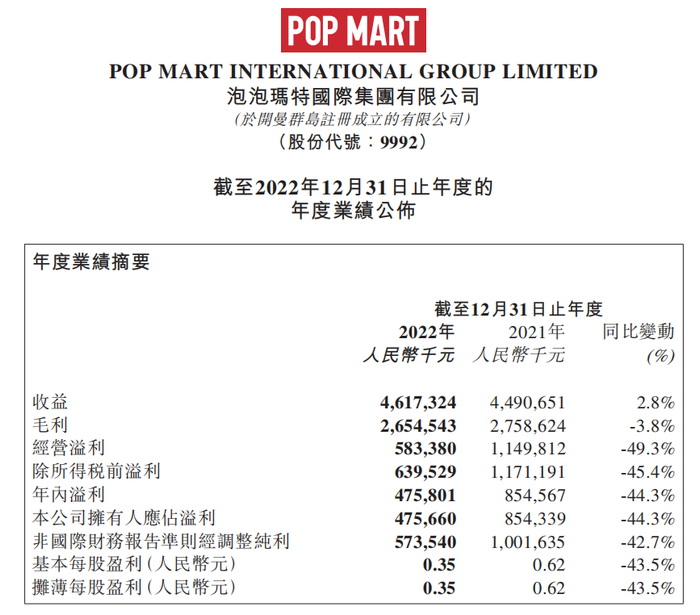 3月29日中午时间,泡泡玛特披露了2022年全年财报。