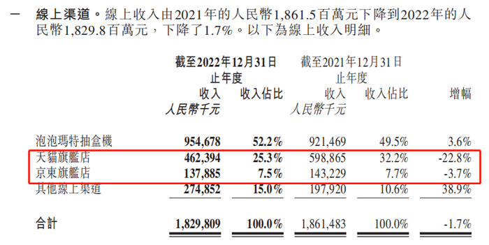 据财报显示,中国内地线下渠道的收入由2021年的21.38亿元下滑至20.69亿元。