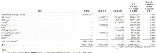 于公告日期,京东集团通过其全资子公司持有京东产发已发行股本总额的约74.96%。WP Entity(华平)、Hillhouse(高瓴)分别持股为6.47%;