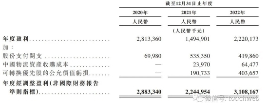 京东产发2020年、2021年、2022年经调整利润分别为28.83亿、22.45亿、31亿。截至2022年12月31日,京东产发持有的现金及现金等价物为11亿。