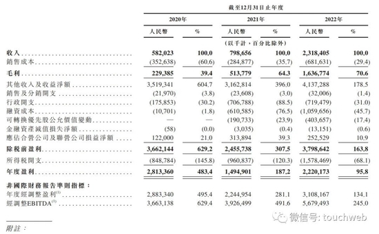 招股书显示,京东产发2020年、2021年、2022年营收分别为5.82亿元、7.99亿元、23.18亿元;毛利分别为2.29亿元、5.14亿元、16.37亿元。