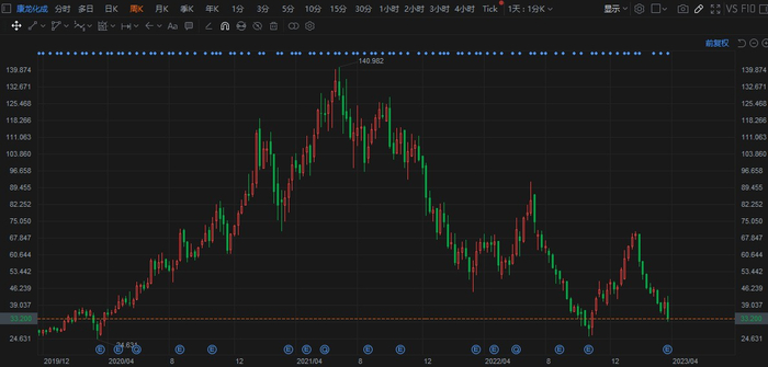 好景不长,随着CRO的光环褪去,康龙化成股价开启了一路向南之旅。以康龙化成H股为例,股价从2021年最高点140.98港元跌至目前的33.35港元,跌幅高达76%。