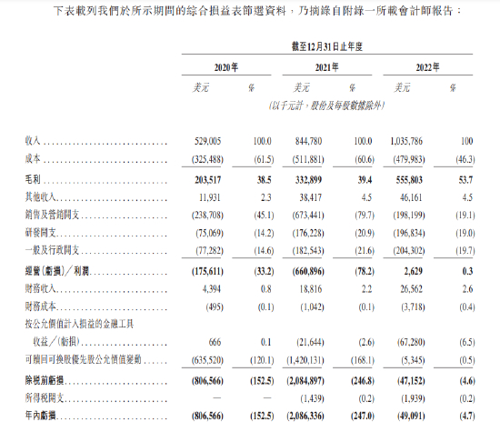 根据财报,货拉拉在2020年至2022年分别实现收入5.29亿美元、8.45亿美元以及10.36亿美元,而同期公司毛利率水平不断提高,分别为38.5%、39.4%以及53.7%。