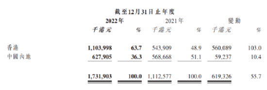 财报显示,内地业务在2021年超越香港业务后,再度被香港业务反超。截至2022年,公司香港业务实现收入11.04亿,收入占比63.7%,香港收益增幅高达103%;而内地业务实现收入6.3亿,当中眼科收入为5亿港元,牙科收入约为1.3亿港元。消费性眼科(屈光和视光)收入占内地眼科收入比例超过70%。