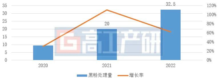 GGII:2022年中国锂电池黑粉回收量32.5万吨 同比增长62.5%