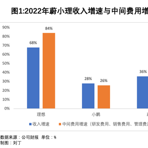 与蔚来相比,小鹏和理想的收入、费用平衡更好。2022年,小鹏汽车收入仅增长28%,但中间费用也仅增长26%。理想汽车的收入增长68%,中间费用增长84%。
