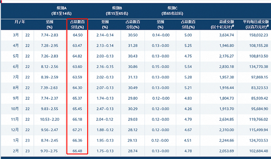 香港联交所数据显示,港股A组经纪商(行业前14名)的市占率呈现逐步扩大趋势,从2022年的3月的64.5%大幅增加至2023年2月的66.48%,B组(行业第15至65名)和C组经纪商(行业第65名以后)市占率则有不同程度的下滑,由此可以看出,港股头部券商市占率明显提升。