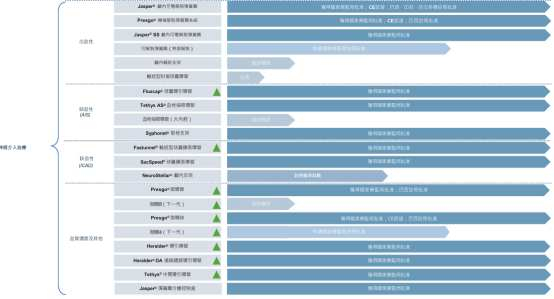 也就是说,密网支架未来有望进一步取代弹簧圈在动脉瘤神经介入治疗中的地位,因此被各大企业报以希望。相较之下,沛嘉在神经介入领域开发尚未涉及密网支架。