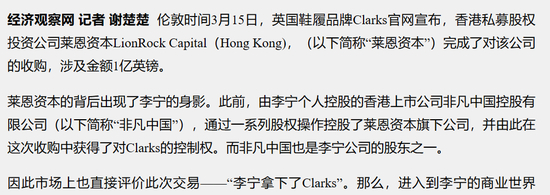 2021年3月,Clarks官网宣布被莱恩资本收购,这起收购案曾引起市场广泛关注。随后,非凡中国很快发布公告称,将从莱恩资本拿下Clarks股权。