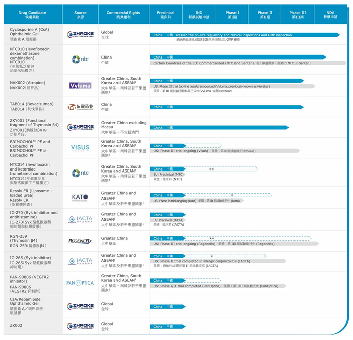 作为一家脱胎于老牌传统制药企业的创新研发型公司,公司的产品包括创新药和仿制药。通过自主开发或许可引进两种方式,兆科眼科已建立起包含26种候选药物的全面眼科药物管线,涵盖影响眼前节及眼后节的六大眼科疾病。