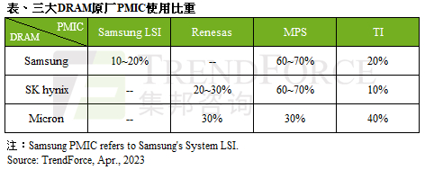 集邦咨询称,服务器新平台Intel Sapphire Rapids与AMD Genoa机种量产在即,但近期市场上传出Server DDR5 RDIMM的PMIC匹配性问题,目前DRAM原厂与PMIC厂商均已着手处理。TrendForce集邦咨询认为,该情况将产生两种影响,首先,由于仅MPS(芯源系统)供应的PMIC无状况,DRAM原厂短期内将同步提升对芯源的采购比重。其次,目前原厂DDR5 Server DRAM生产仍停留在旧制程,短期内供给量难免受此事件影响,故预估第二季DDR5 Server DRAM价格跌幅将收敛,由原预估15-20%收敛至13-18%。