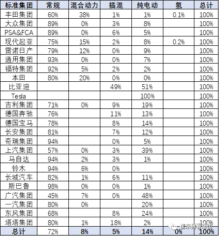 世界各厂家新能源差异明显,丰田的混合动力超强,而特斯拉只有纯电动,且占据绝对主力地位。